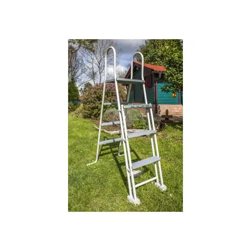 - Permite desmontar los peldaños de un lado para impedir el acceso de los niños a la piscina y prevenir accidentes. Conforme a la norma Europea